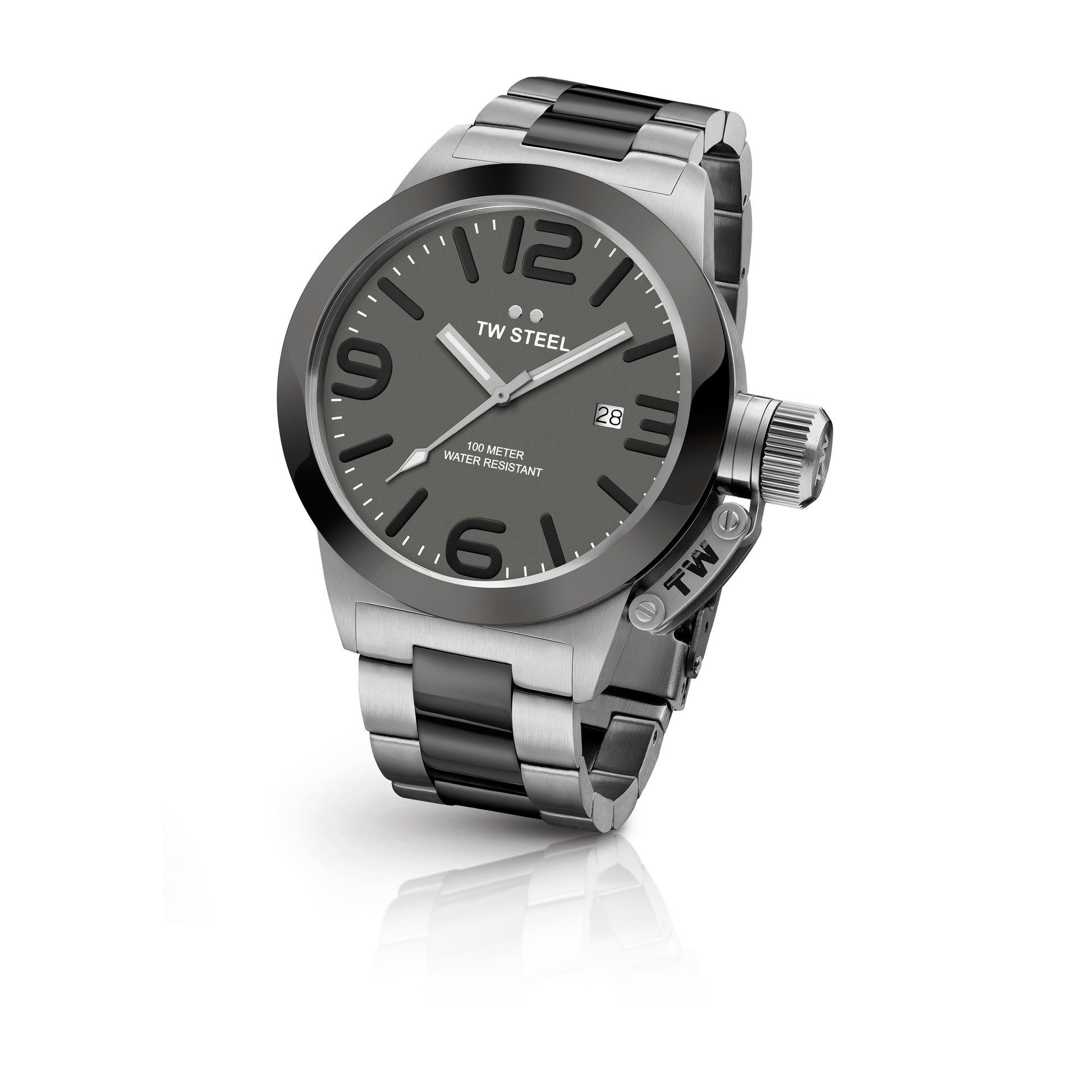 TW Steel Canteen 50mm Steel PVD Dark Titanium Coated Dark Grey On Bracelet CB202