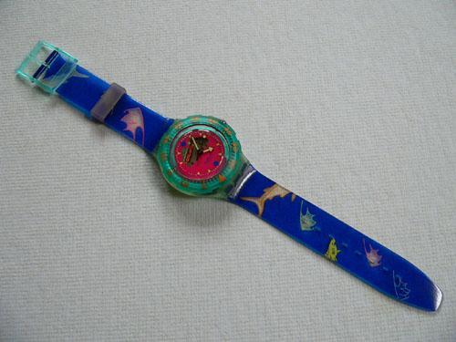 1991 Happy fish SDN101 the most popular Scuba swatch ever released. This version has the visible coil showing in the movement as was the European model.