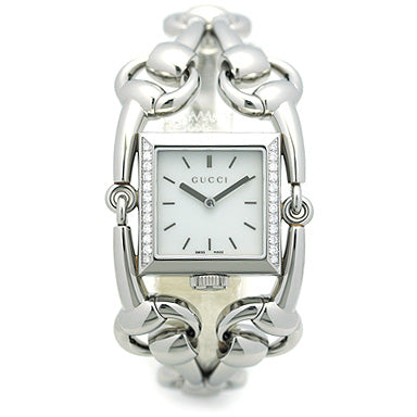 Gucci Signoria Large Stainless Steel MOP Diamond Bezel On Bracelet Ladies Watch YA116307